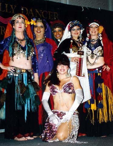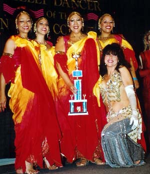 (L-R) Louchia (SO CA) Egyptian Champion; Ralph Karapetian, Trophy Sponsor; Isis,(UT) 1st RU; Angela Prato (OH) 2nd RU; Harry Saroyan, Trophy Sponsor; Talia (SO CA), 3rd RU.