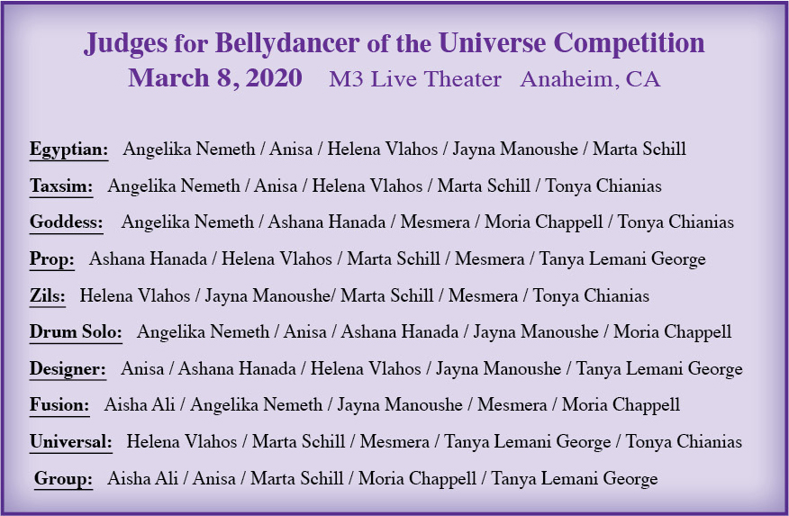& Global Belly Dance X-PO -- March 2020! ~ Exclusive Award Winning Master Judging Panel found only at Bellydancer of the Universe ®