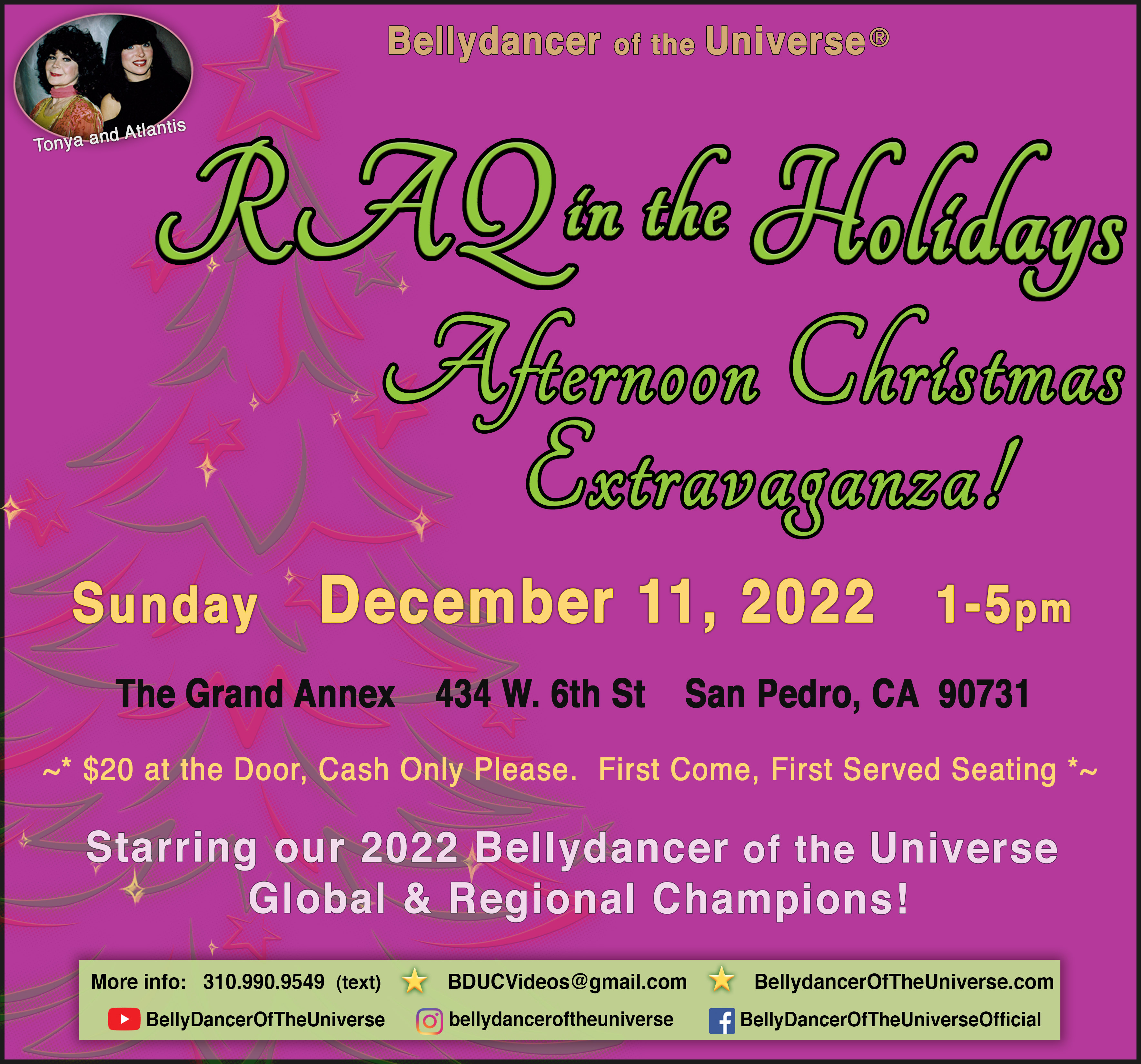 "Bellydance X-po™," "Belly Dance X-po™," "Global Bellydance X-po™," "Global Belly Dance X-po™, "Bellydance Xpo™," "Belly Dance Xpo™," "Global BellydanceXpo™," "Global Belly Dance Xpo™," "Bellydancer of the Universe®," "Belly Dancer of the Universe®," "Bellydance Universe®," "Belly Dance Universe®," and "BDUC" are trademarks of A. Long and the Bellydancer of the Universe® Competitions. Bellydancer of the Universe® intellectual property is protected by Federal Trademark.