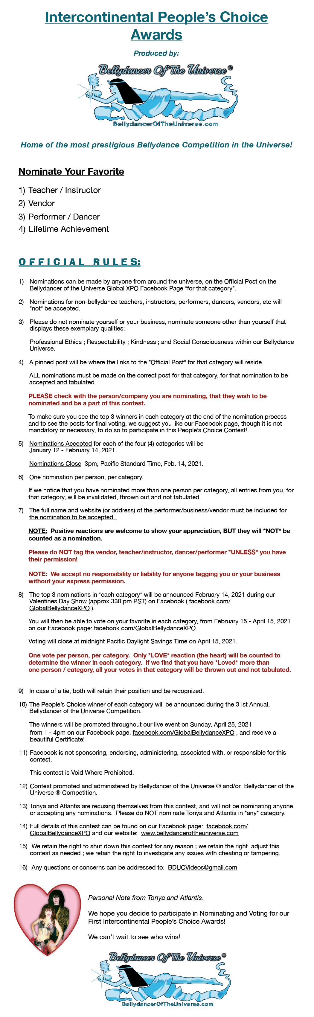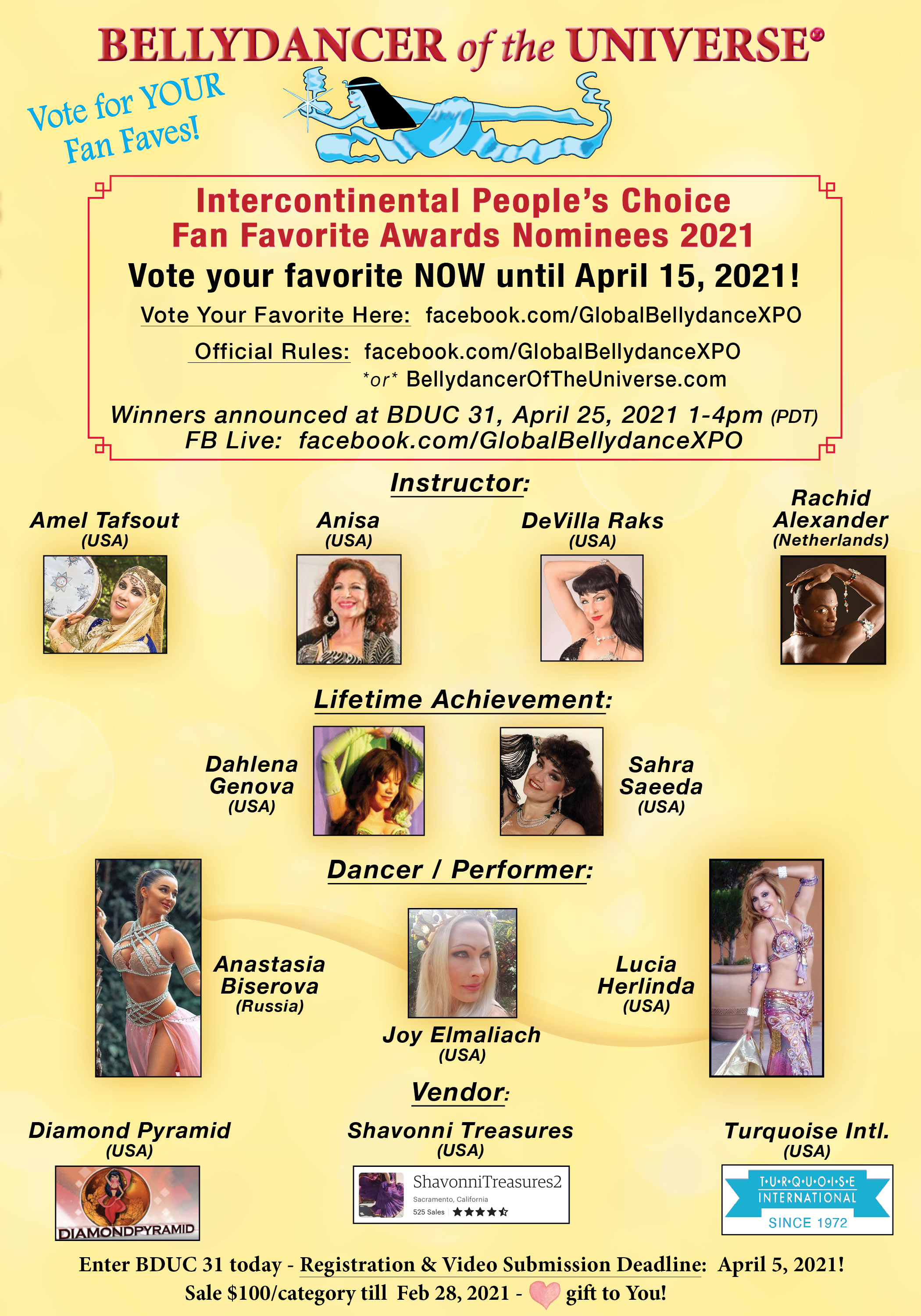 ==> Official Voting Instruction Post w/ links to Voting Post for EACH Category is on FACEBOOK! https://www.facebook.com/BellyDancerOfTheUniverseOfficial/posts/3838932022858556